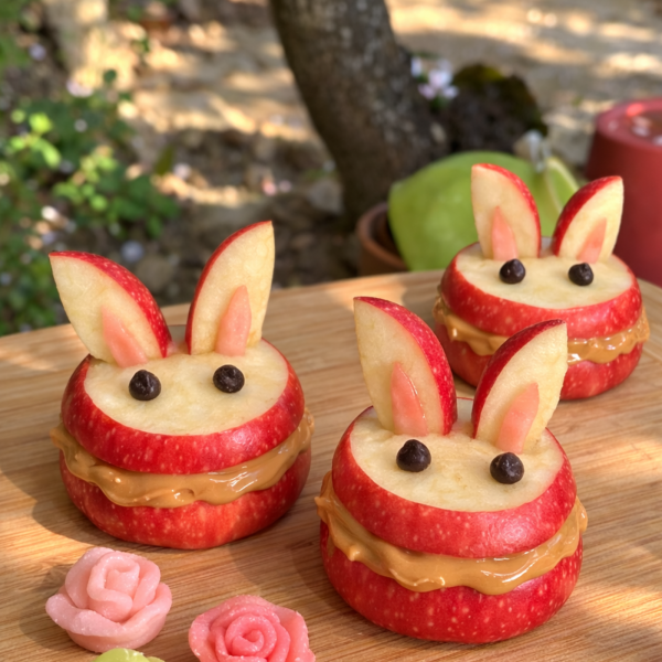 - Enfin, plantez un pic en bois dans la pomme pour la tenir plus facilement. Dégustez-la en la partageant pour Pâques !