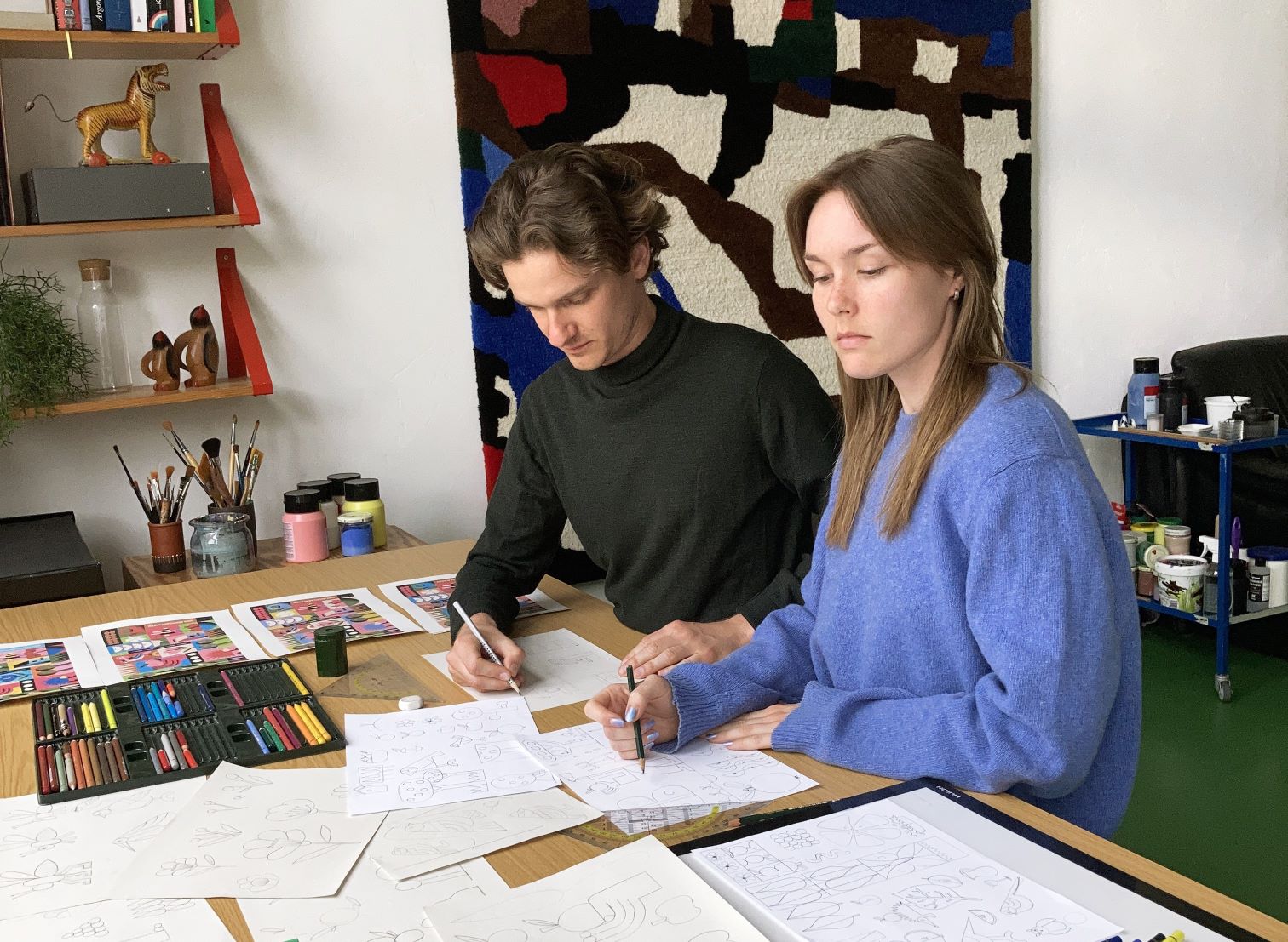 Son style géométrique captivant, entre le figuratif et l’abstrait, raconte des histoires visuelles uniques.